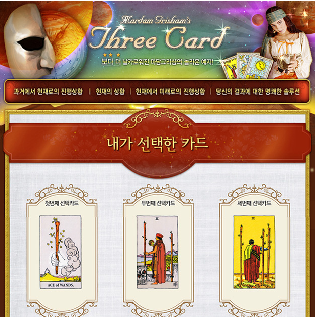또한 타로카드점을 통해 자신의 과거에서 현재로의 진행상황 등에 대한 보다 더 날카로운 조언을 받을 수 있습니다. 또한 세부적인 설명 및 결과에 대해 명쾌한 솔루션을 내려줍니다.
